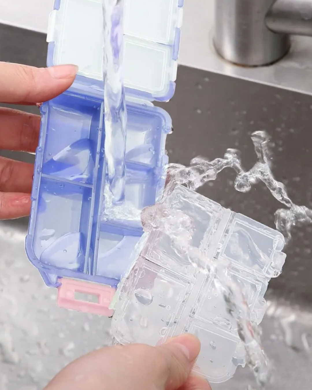 Incluye divisiones con tapas, perfectos para llevar tus pastillas, vitaminas o medicamentos diarios de forma compacta y segura. Cada uno tiene stickers específicos de marcas populares, ¡porque ser responsable también puede tener personalidad!